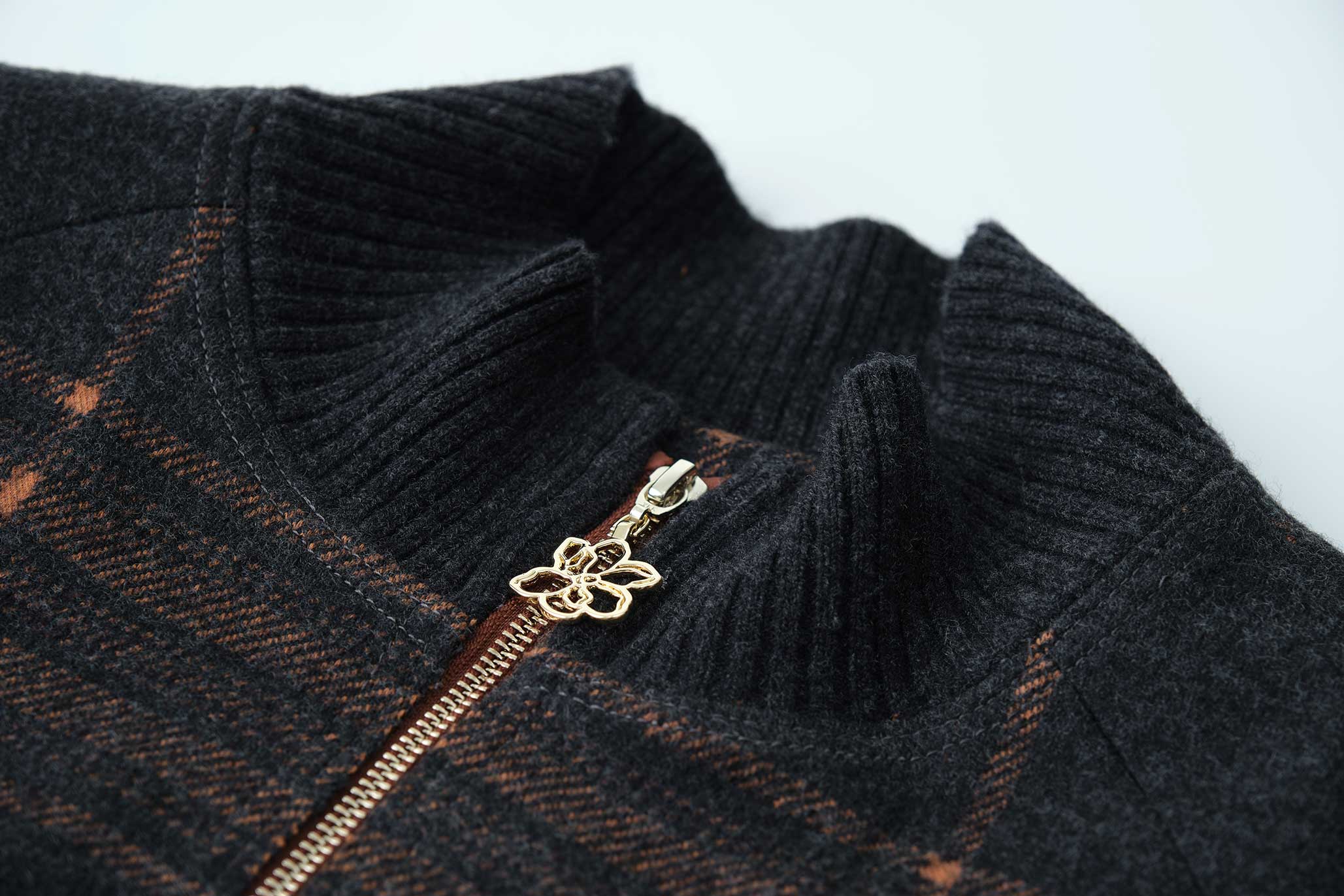 暖橘窗棂格女外套