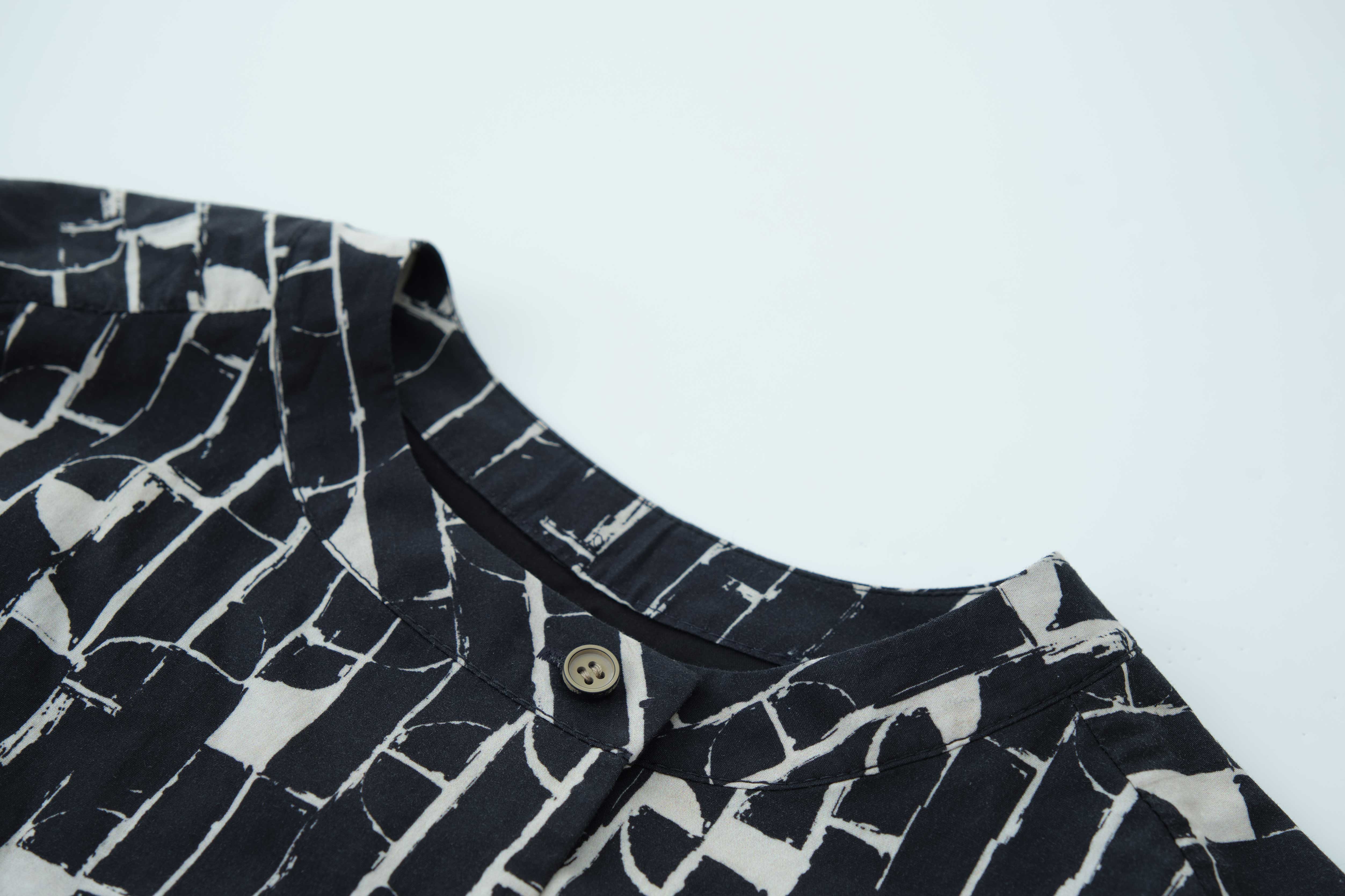 石墨黑魔方印花女衬衫