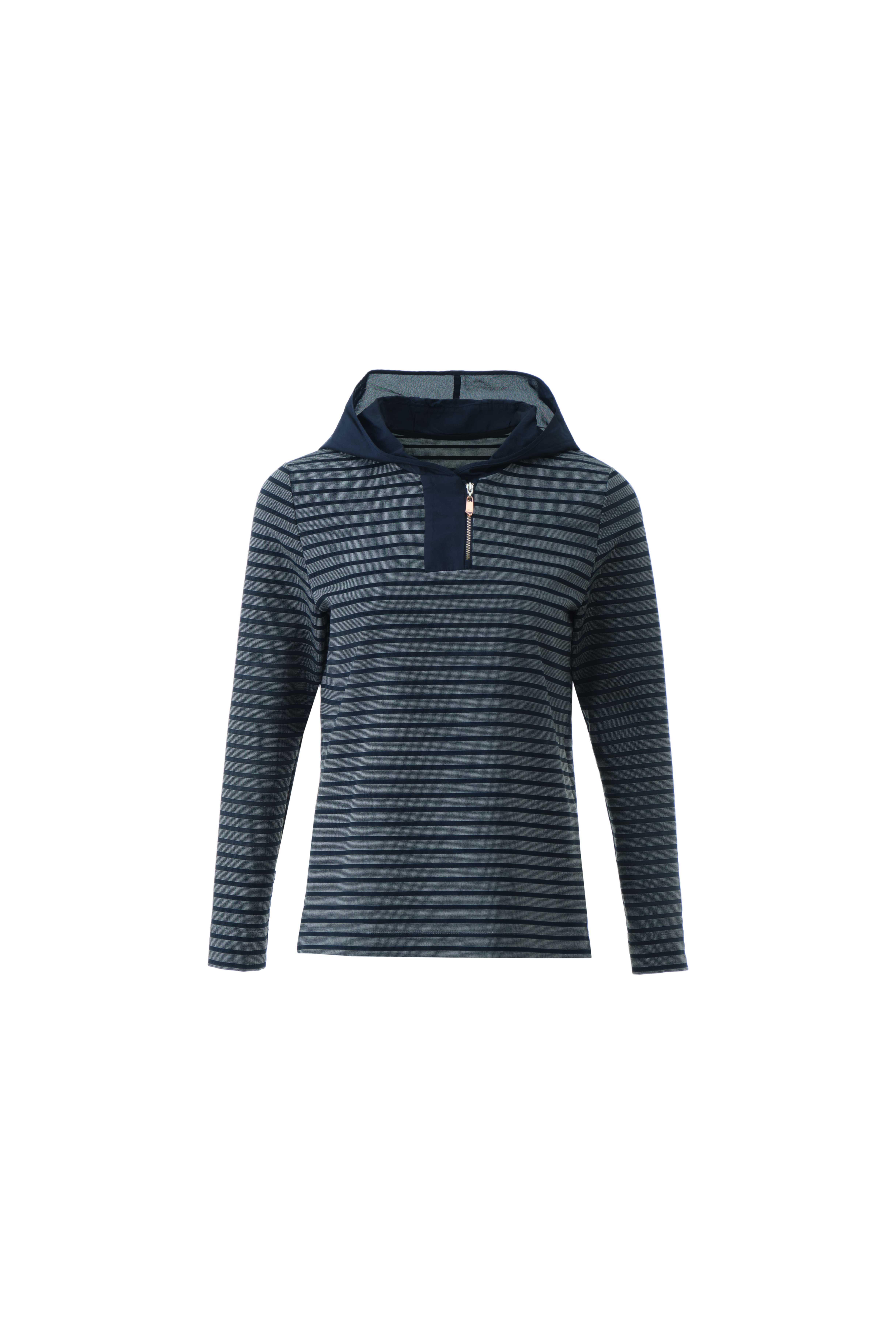 青黛蓝航海条纹女T恤