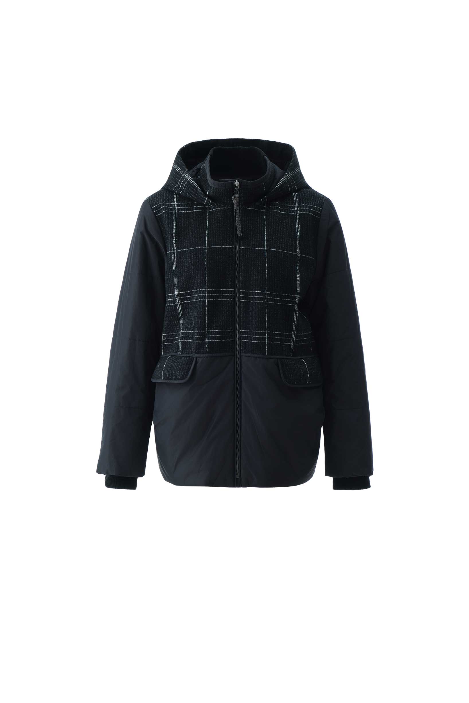 碳素黑格女棉服