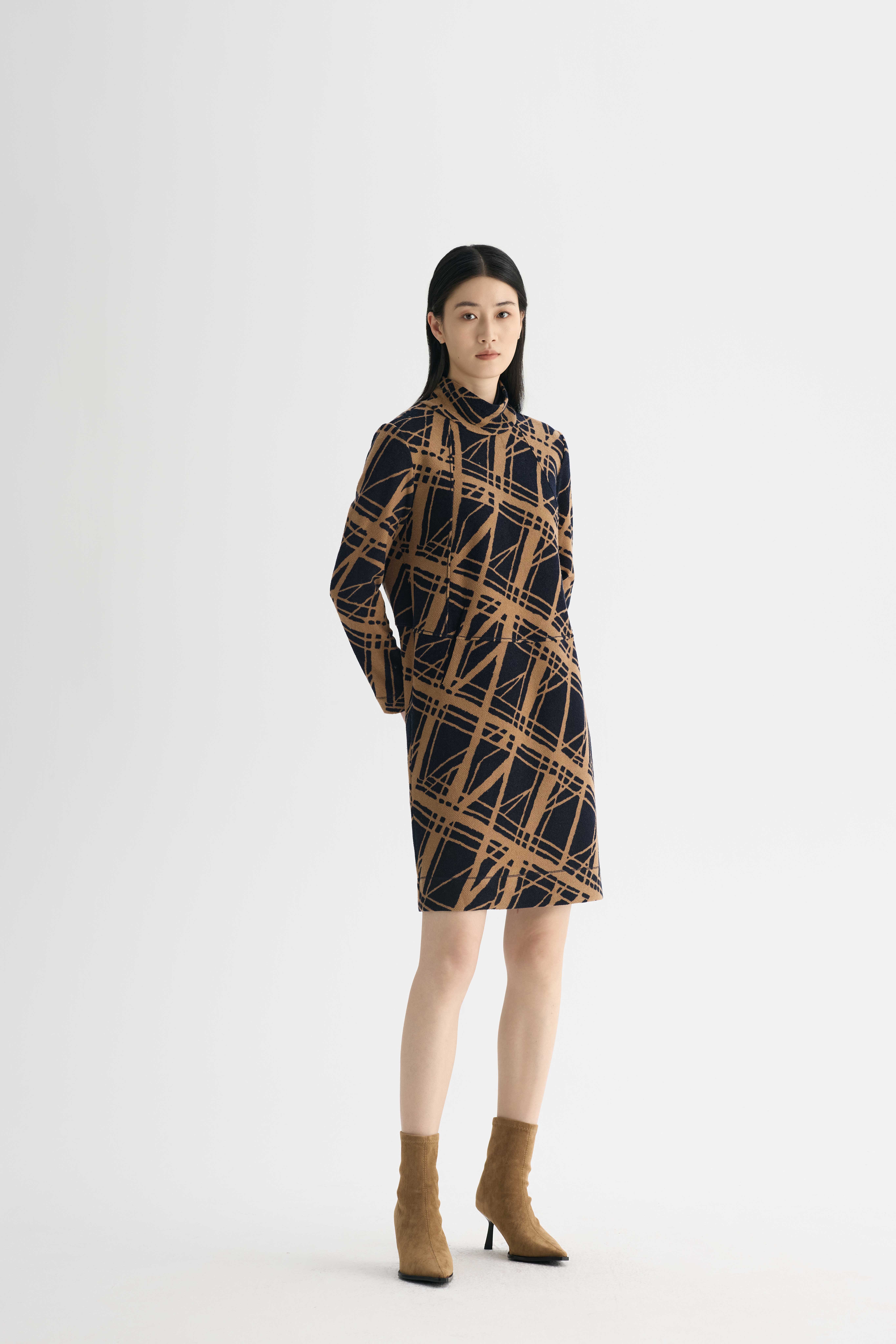 麦芽糖剪影印花女连衣裙