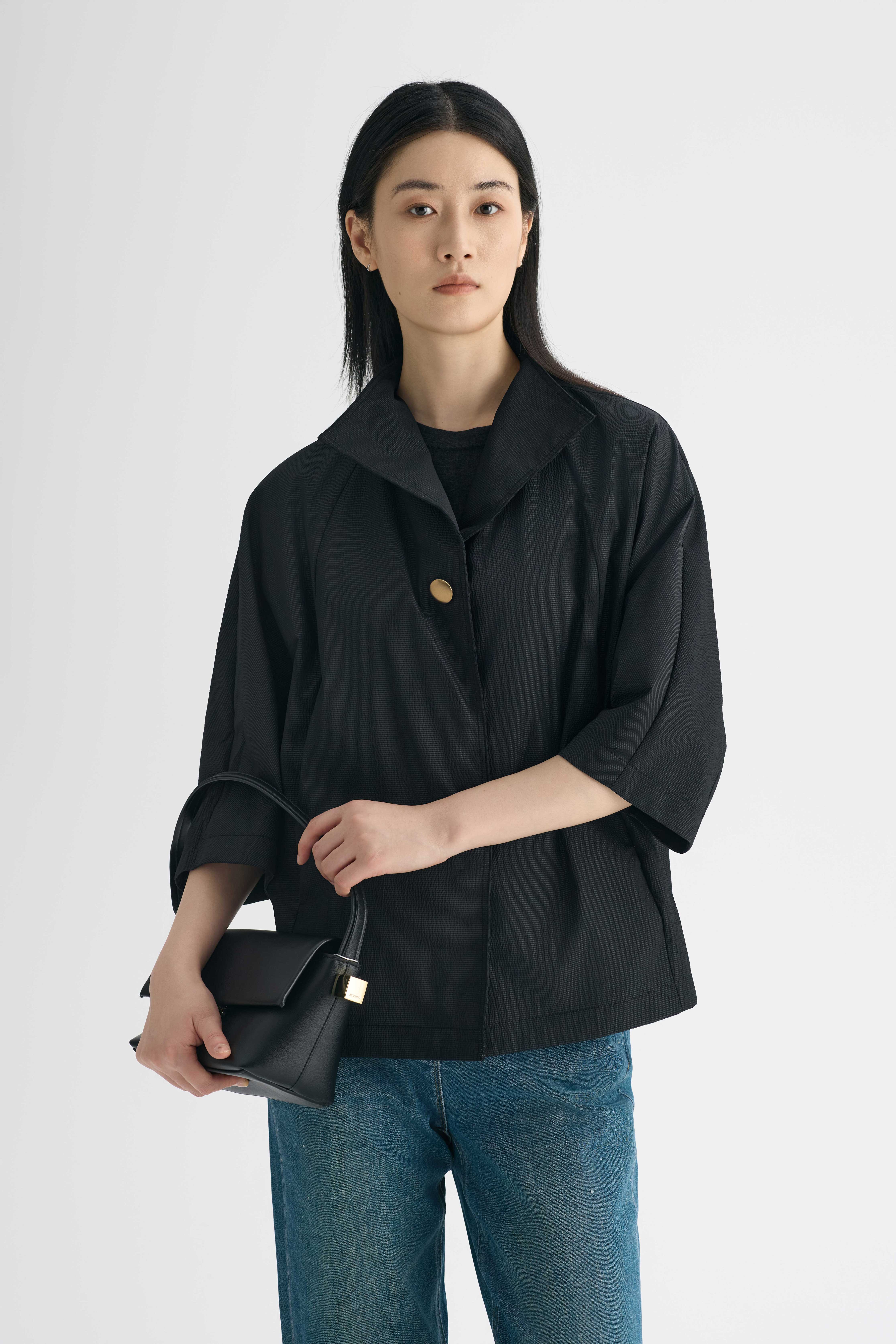 石墨黑女外套